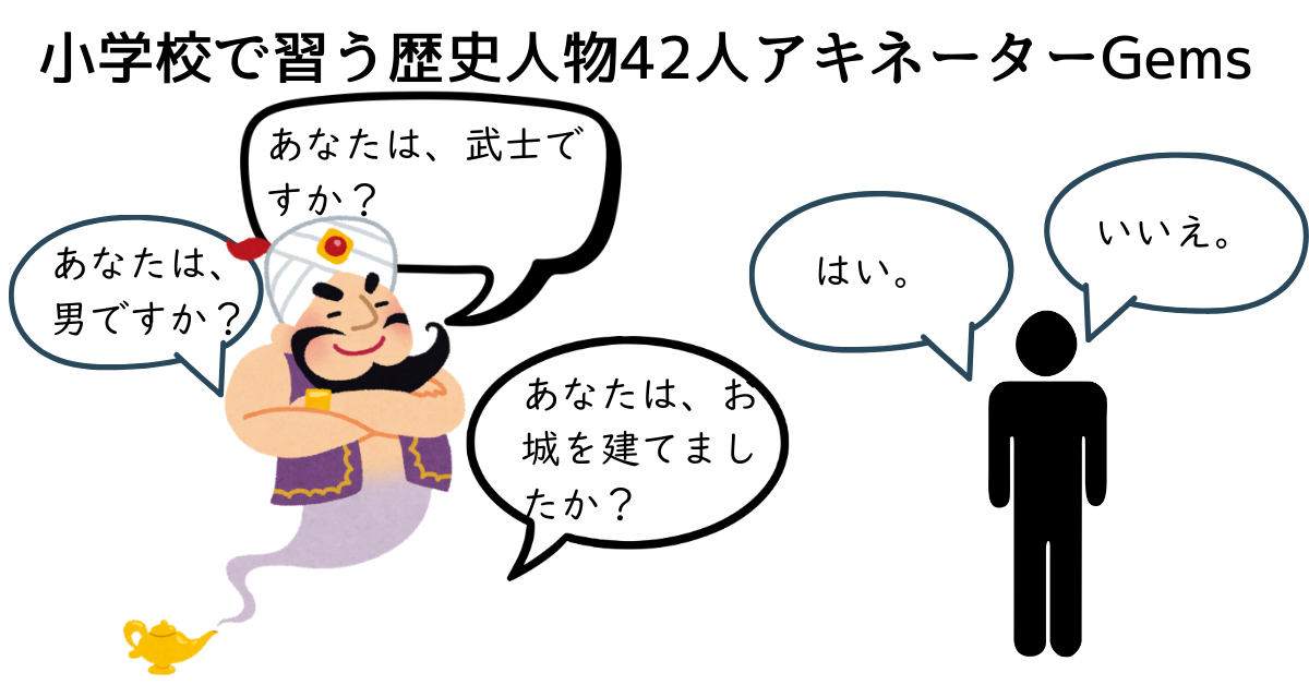 小学校で習う歴史人物42人アキネーターGemsはこちらからどうぞ。